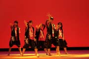 | 私たち、東大和高校は、部員1年生20人、2年生20人の計40人で活動しています。今回踊りフェスティバルには初めての参加です。 このような盛大なお祭りに参加できること、また立派なホ−ルで踊れることを大変うれしく思っています。未熟な私たちですが、今日は精一杯踊りますのでご覧ください。 |